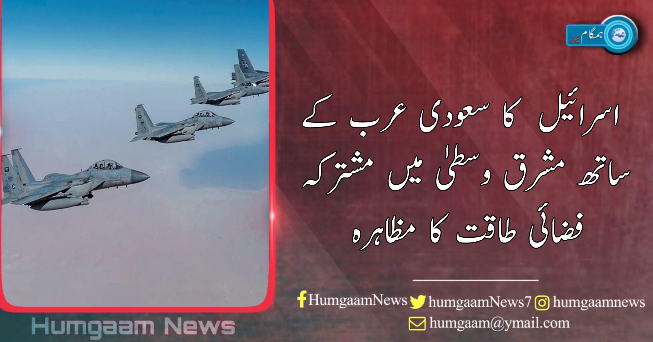 ریاض(ہمگام نیوز) مانیٹرنگ نیوز رپورٹس کے مطابق سعودی عرب نے اسرائیل، امریکہ اور قطر کے ساتھ مشرق وسطیٰ میں ایک مشترکہ فضائی طاقت کا مظاہرہ کیا ہے جو بادی النظر میں ایران مخالف مظاہرہ ہے۔