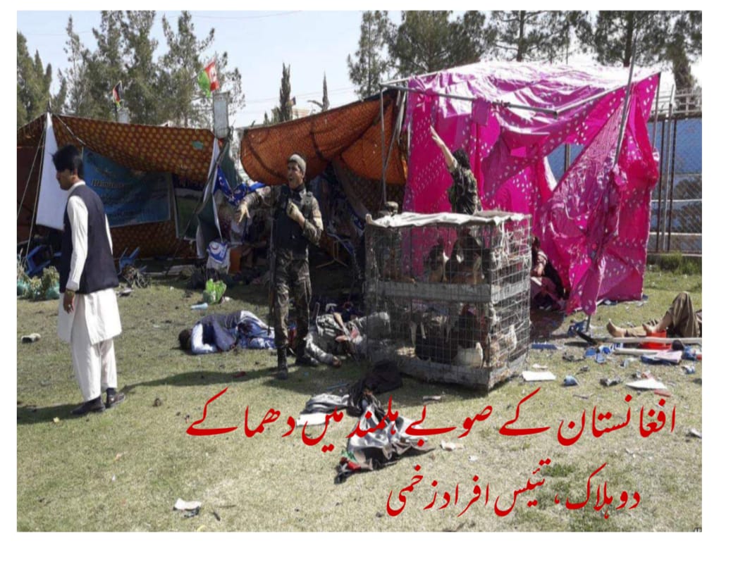 حکام کے مطابق دھماکے صوبے کے دارالحکومت لشکر گاہ کے ایک اسٹیڈیم میں اس وقت ہوئے جب وہاں کسانوں کے دن کے سلسلے میں ایک تقریب جاری تھی۔