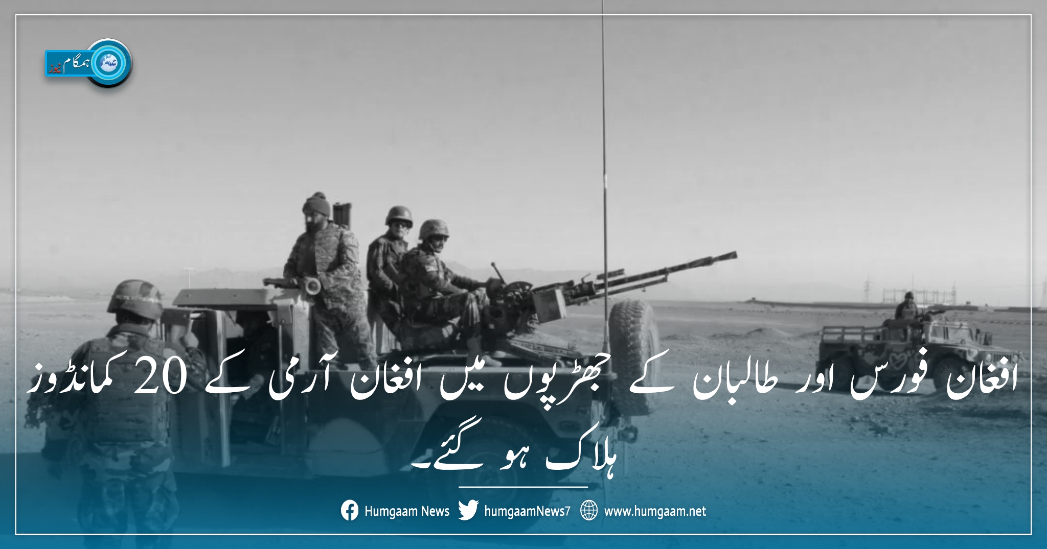 افغان فورس اور طالبان کے جھڑپوں میں افغان آرمی کے 20 کمانڈوز ہلاک ہوگئے۔