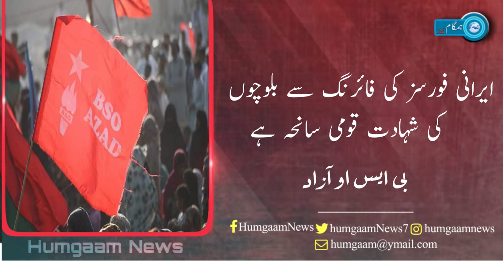 ایرانی فورسز کی فائرنگ سے بلوچوں کی شہادت قومی سانحہ ہے:بی ایس او آزاد