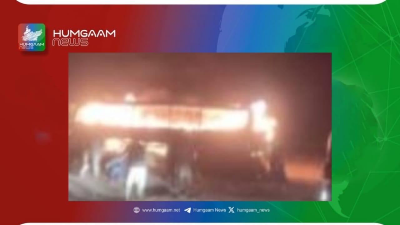 پولیس کے مطابق بس پہلے ایک موٹر سائیکل سے ٹکرائی اور پھر ایندھن سے بھرے ٹرک سے جا ٹکرائی، جس کے بعد خوفناک آگ بھڑک اٹھی۔ حادثے میں بس کے تین مسافر زندہ بچ نکلے جبکہ ٹرک میں موجود دو افراد اور موٹر سائیکل پر سوار دو افراد بھی جان سے گئے۔