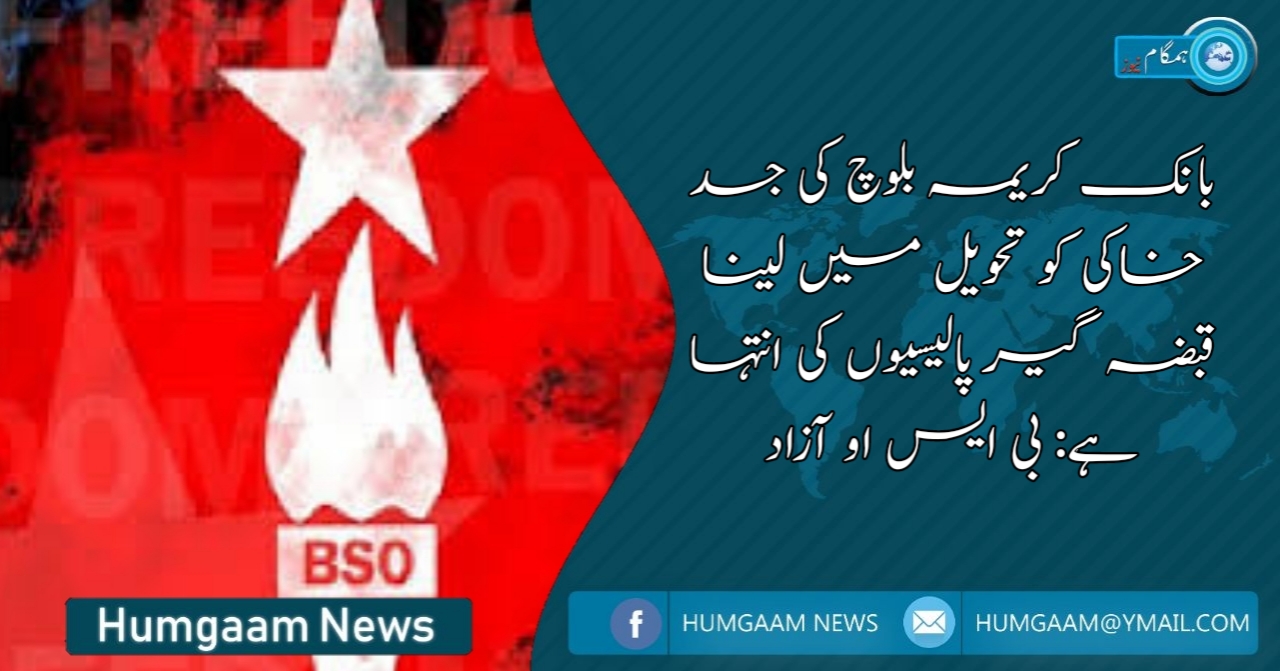 بانک کریمہ بلوچ کی جسد خاکی کو تحویل میں لینا قبضہ گیر پالیسیوں کی انتہا ہے: بی ایس او آزاد