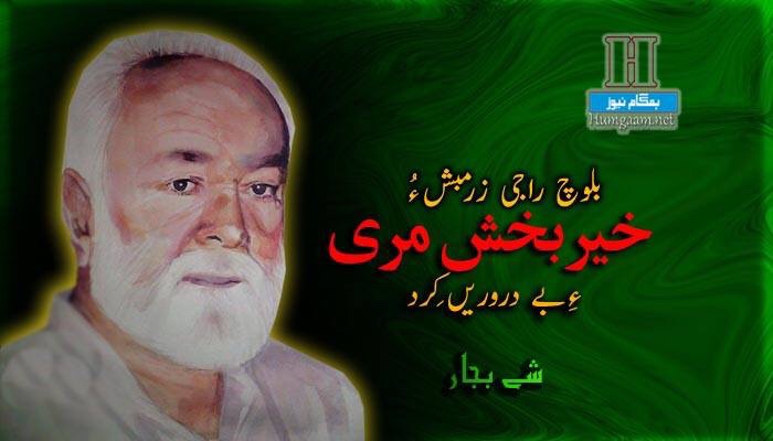 بلوچ راج 10 جون 2014 ءَ وتی سرکیل ءُ مھکم ایں رھشون واجہ حیر بخش مری ءَ چہ ذبہر بیت. داں دگنیا استیں نواب حیر بخش بلوچاں ہوار کلیں ایر دستیں راجانی زردانی اندرا زندگ مانیت.