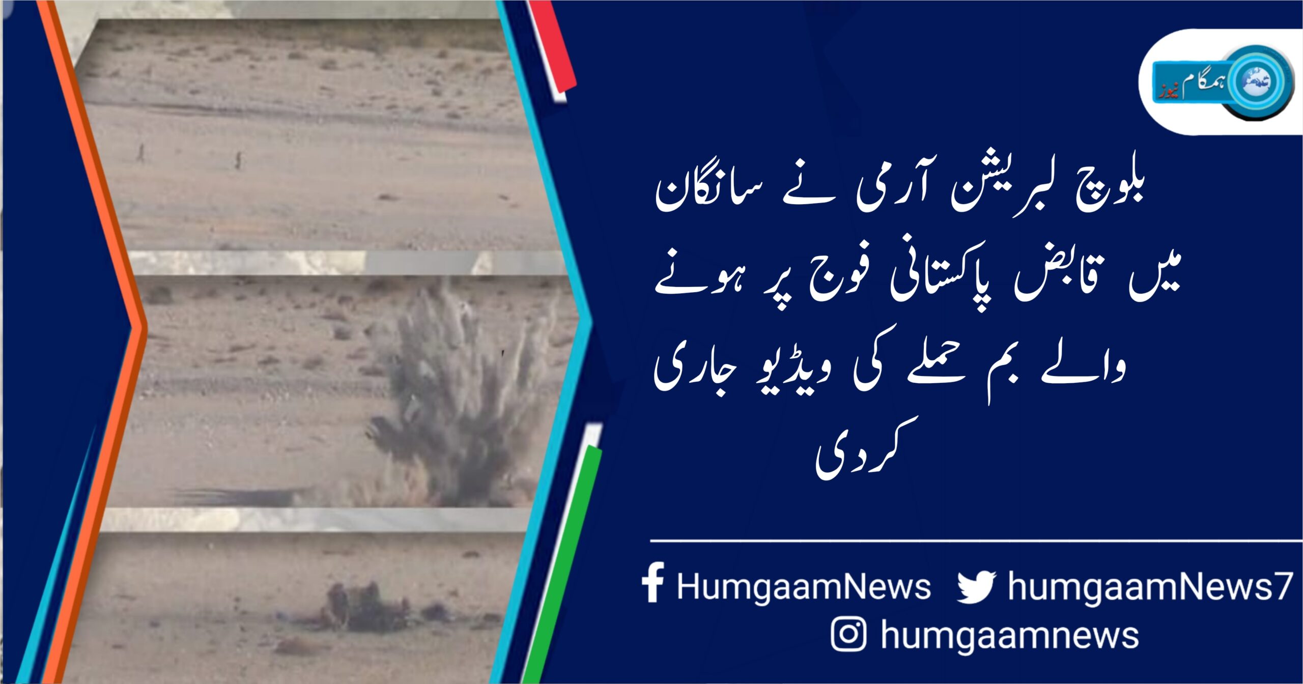 کوئٹہ (ہمگام نیوز) بلوچ لبریشن آرمی نے قابض پاکستانی فوج پر بولان کے علاقے سانگان میں ہونے والے بم حملے کی ویڈیو جاری کردی۔ ویڈیو بلوچ لبریشن آرمی نے اپنے آفیشل ویب چینل پر جاری کی۔ حملے میں بلوچ لبریشن آرمی نے قابض فوج کی گاڑی کو نشانہ بنایا ہے جس سے گاڑی مکمل طور پر تباہ ہوگئی جس گاڑی میں سوار تمام اہلکار ہلاک ہوئے تھے۔