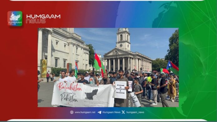 اس موقع پر احتجاج میں شریک مظاہرین نے برطانوی حکومت سے مطالبہ کیا کہ وہ بلوچ قوم کی آزادی کی تحریک کی حمایت کرے اور جبری گمشدگیوں کے خلاف آواز بلند کرے۔