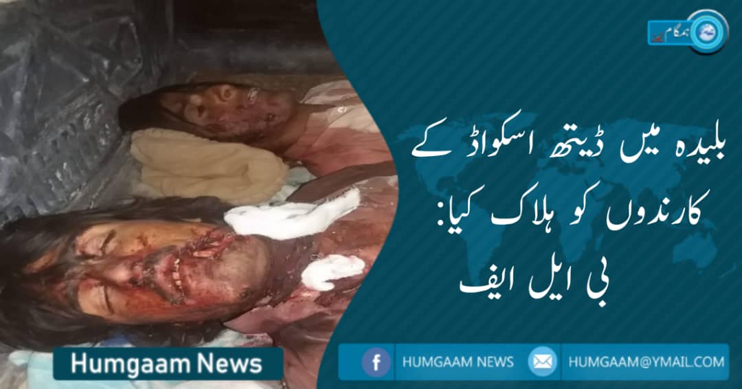 بلیدہ(ہمگام نیوز)بلوچستان لبریشن فرنٹ کے ترجمان میجر گہرام بلوچ نے بلیدہ میں ڈیتھ اسکواڈ کے دو کارندوں کے ہلاکت کی ذمہ داری قبول کرتے ہوئے کہا کہ