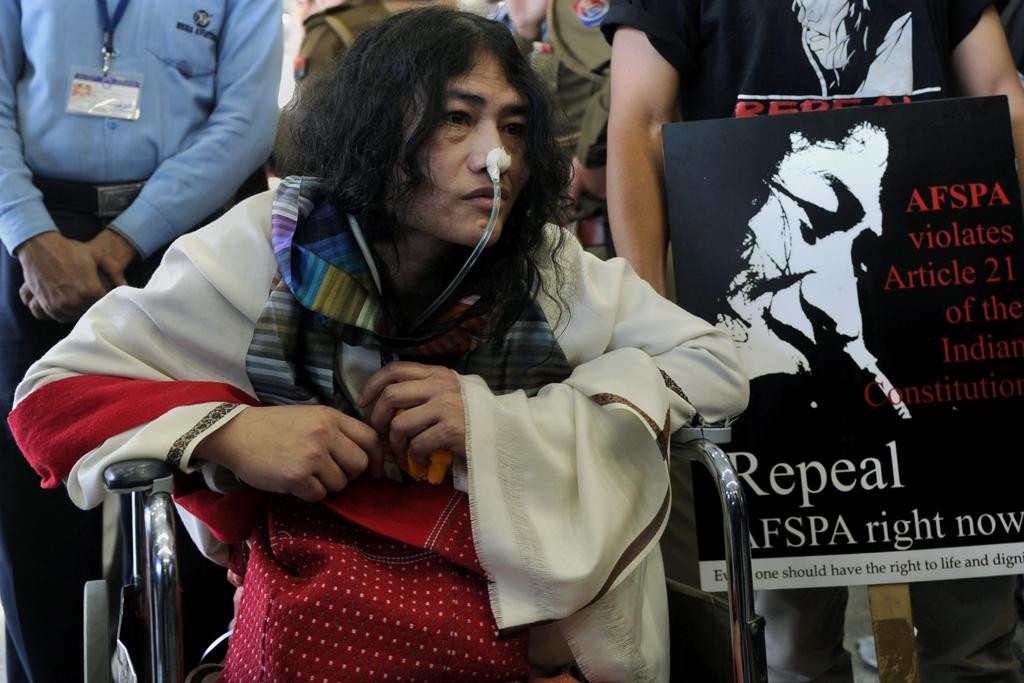 شرمیلا گزشتہ 15 سال سے منی پور میں مسلح افواج کو دیے جانے والے خصوصی قانون (افسپا) کو ہٹانے کا مطالبہ کرتے ہوئے بھوک ہڑتال پر ہیں۔