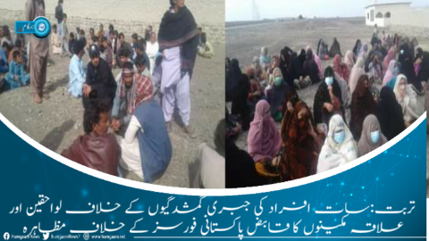 مقبوضہ بلوچستان کے علاقے تمپ کے مقام کلاھو اور سرنکن سے تعلق رکھنے والے سیکڑوں مردو خواتین اور بچوں نے منگل کو سخت احتجاج کرتے ہوئے ایف سی کی کیمپ کے سامنے دھرنا دیا، مظاہرین نے کہاکہ فورسز کے اہلکار آئے روز گھروں میں گھس کر لوگوں کو تنگ کرتے اور ان کے بچوں کو ماورائے آئین و قانون لاپتہ کرتے ہیں، انہوں نے کہاکہ گزشتہ شب بھی اہف سی کی بھاری نفری نے آکر ہمارے گھروں پر چھاپہ مارا اور اس دوران ہمارے چھ بچوں کو اٹھاکر لاپتہ کیا جن کے بارے میں ہمیں تاحال کوئی معلومات نہیں دی جارہی ہے، انہوں نے کہاکہ ساری ولد براہیم، عارف ولد رحیم جان، مصدق ولد رحیم جان، لطیف ولد محمد، شیراز ولد اسماعیل اور عظیم ولد نزرت شامل ہیں جنہیں لاپتہ کیا گیا ہے، انہوں نے مطالبہ کیا کہ تمام لاپتہ افراد کو فوری بازیاب کیا جائے اگر وہ مجرم ہیں اور ان کے ثبوت موجود ہیں تو عدالتوں میں ثبوت پیش کیے جائیں تاکہ عدالت اپنی طرف سے انصاف کے تقاضے پورا کرے، اگر اس طرح لوگوں کو اٹھاکر لاپتہ کردیا جائے تو قانون اور آئین کی روح مجروح ہوتی ہے، بعد ازاں اسسٹنٹ کمشنر تمپ اور ایس ایچ او تمپ نے مظاہرین سے مزاکرات کی کوشش اور ان کے مطالبات مان کر لاپتہ افراد بازیاب کرانے میں کوشش کی یقین دہانی کرائی تاہم. مظاہرین نے مطالبہ کیا کہ لاپتہ کیے گئے افراد کو فوری بازیاب کیا جائے ورنہ وہ تمپ ٹو تربت شاہراہ پر دھرنا دے کر اسے بلاک کردیں گے-