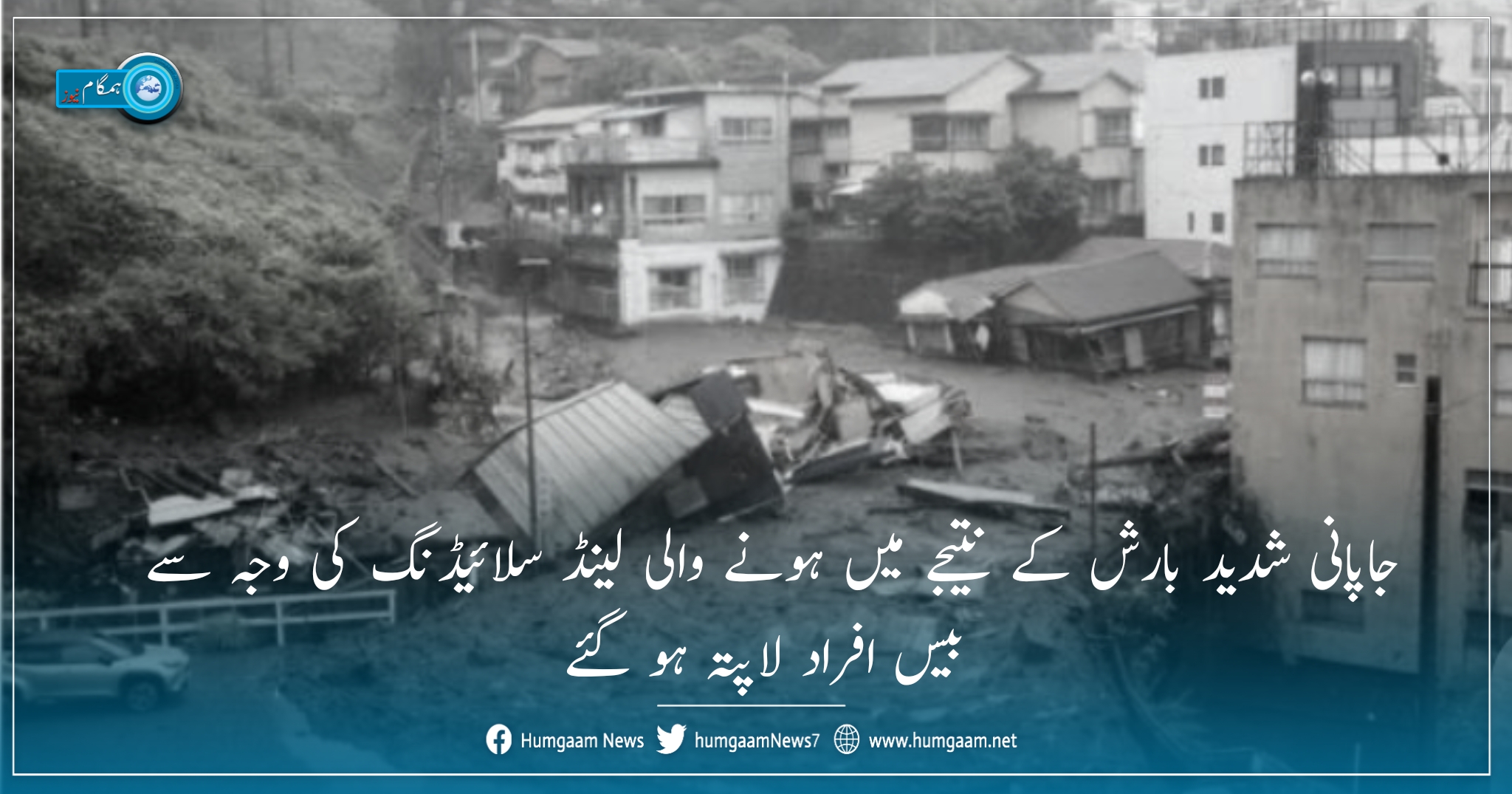 ٹوکیو(ہمگام نیوز) مانیٹرنگ نیوز ڈیسک رپورٹس کے مطابق جاپانی شہر آتامی میں شدید بارش کے نتیجے میں ہونے والی لینڈ سلائیڈنگ کی وجہ سے بیس افراد لاپتہ ہو گئے۔