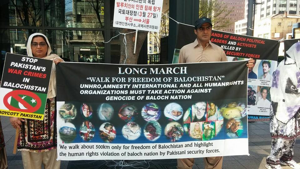 جنوبی کوریا(ہمگام نیوز)آزادی لانگ مارچ کے شرکاء نویں دن مزید 3 کلومیٹر کا فاصلہ طے کرکے اقوام متحدہ کے دفتر کے سامنے احتجاجی مظاہرہ کیا۔اور “آزادی لانگ مارچ” اختتام پذیر ہوا، جنوبی کوریا میں بلوچ آزادی پسندوں کا یہ لانگ مارچ نصیر بلوچ کی قیادت میں 27 مارچ 2016 کو Busan میں بلوچ قومی آزادی کے حوالے سے احتجاجی مظاہرہ کرنے کے بعد شروع ہوا تھا۔ اور آج 9 دن کے کم ترین وقت میں 463 کلومیٹر کا فاصلہ طے کرکے سیول شہر میں UNHRO کے دفتر کے سامنے احتجاجی مظاہرہ کرنے کے بعد اختتام پذیر ہوا۔ لانگ مارچ کے شرکاء نے راستے میں تکالیف اور مشکلات کا سامنا کرنے کے باوجود انتہائی پرعزم اور قومی جذبے سے سرشار ہوکر یہ تکلیف دہ مسافت طے کی۔ نصیر بلوچ اور میر یاسین بلوچ نے نمائندہ سنگر سے بات چیت کرتے ہوئے کہا کہ “ہم نے مارچ کے دوران جو تکالیف اور مشکلات برداشت کیں،اس سے ہمارے حوصلے اور بلند ہوئے۔ ہر اگلا قدم پچھلے قدم سے زیادہ حوصلہ افزا تھا۔ بلوچ شہداء کی قربانیوں نے قدم قدم پر ہمیں ہمت دی، اور ہم وقت مقررہ پر اپنی منزل پر پہنچ گئے۔” انہوں نے کہا کہ “یہ لانگ مارچ ایک ابتدا تھی کہ اس ذریعے سے ہم کس طرح اپنی آواز عالمی برادری تک پہنچا سکتے ہیں۔ ہم عملی قدم اٹھاتے ہوئے مزید اس سلسلے میں جدوجہد کرینگے۔ تاکہ عالمی برادری اور اقوام متحدہ تک موثر انداز میں اپنا مدعا پہنچا سکیں۔ اور بلوچ قومی مسئلہ اجاگر ہو ، انہوں نے کہا کہ “BUsan سے لیکر سیول تک جتنے شہروں اور آبادیوں سے ہم گزرے، وہاں ہم نے کورین عوام کو بلوچستان پر پاکستانی جبری قبضہ گیریت اور بلوچ سرزمین پر پاکستانی بربریت بارے آگاہی دی۔ لوگوں کو بلوچ عوام کے خلاف ہونے والی پاکستانی سنگین جنگی جرائم، سیاسی کارکنوں کو جبری طور پہ اغواء کرنے اور ان کی تشدد زدہ مسخ لاشیں پھینکنے کے حوالے سے معلومات پہنچائی۔ دوران سفر ہم نے راستے میں 2000 سے زائد پمفلٹ تقسیم کئے۔ جہاں کوریا کے شہریوں نے مدد کرنے کے ساتھ ہر سطح پر ہماری آواز پہنچانے کی یقین دہانی کروائی۔ UNHRO اور ایمنسٹی انٹرنیشنل کے دفاتر کے سامنے احتجاجی مظاہرہ کرنے اور یادداشت پیش کرنے کے بعد ہماری یہ لانگ مارچ اختتام پذیر ہوا۔ ایمنسٹی انٹرنیشنل نے ہمیں یقین دہانی کرائی کہ وہ اس لانگ مارچ اور احتجاجی مظاہرے کے بارے میں رپورٹ لندن میں اپنے انٹرنیشنل سیکرٹریٹ کو ارسال کرینگے، یاسین بلوچ نے کہ دنیا میں کوئی کام ناممکن نہیں، صرف ایمانداری، خلوص، حوصلہ اور ہمت ہونی چاہئے۔ تب انسان اپنی بساط سے بڑھ کر کام سرانجام دے سکتا ہے۔ ہمیں قومی سوچ، بلوچ قومی تحریک کی مقصدیت اور بلوچ کیس کو دنیا کے سامنے اجاگر کرنا ہے۔ اس کیلئے ضروری ہے کہ ہم بلوچ اپنی کمزوریوں کی نشاندہی کرنے کے ساتھ ان کا ازالہ بھی کریں۔ تاکہ عالمی برادری ہماری آواز پر متوجہ ہو، ہمیں یہ دیکھنا چائیے کہ ہم کہاں کھڑے ہیں اور وقت کا تقاضا کیا ہے ،اپنے آئندہ کے پروگرام کے بارے میں انہوں نے نمائندہ سنگر کو بتایا کہ “5 اپریل بروز منگل امریکہ اور برطانیہ کے سفارت خانوں کے سامنے احتجاجی مظاہرہ کریں گے۔ اور 6 اپریل کو انڈین سفارت خانے کے سامنے احتجاجی مظاہرہ کریں گے، آخر میں انہوں نے تمام آزادی پسند رہنماؤں، کارکنوں، بلوچ فرزندوں اور میڈیا کے نمائندوں کا شکریہ ادا کیا جنہوں نے سوشل میڈیا اور پرنٹ میڈیا میں لانگ مارچ کی مقصدکو اجاگر کیا۔