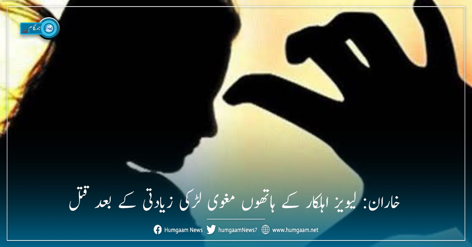 تفصیلات کے مطابق لیویز اہلکار زائد ولد آحمد علی محمد حسنی جس کا تعلق واشک کے علاقے کلی اسفند آباد شاہوگیڑی سے ہے، نے ساتھیوں کے ساتھ مل کر خاران سے ایک لڑکی کو بندوق اور سرکاری پوزیشن کے زور پر اغواء کرلیا اور بعد میں قتل کرکے لاش دفنا دیا۔