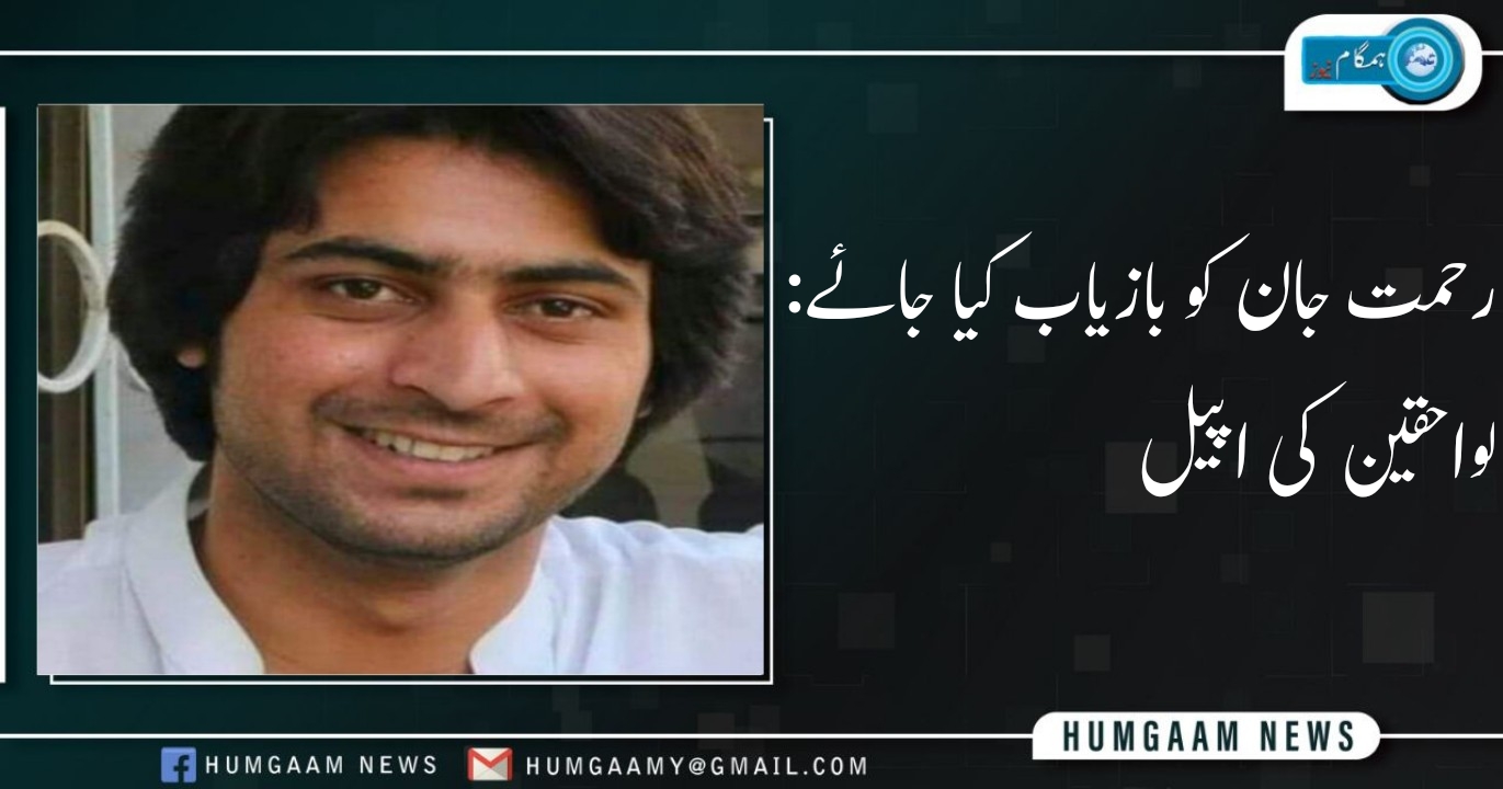 لواحقین نے اپیل کرتے ہوے کہا کہ رحمت جان کو فوری طور پر بازیاب کیا جائے۔
