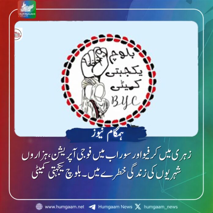 سوراب ( ہمگام نیوز) بلوچ یکجہتی کمیٹی زہری ،کرفیو اور سوراب کے علاقے میں بڑے پیمانے پر فوجی آپریشن کی شدید مذمت کرتی ہے۔ تنظیم نے کہاہے کہ گزشتہ چار دنوں سے زہری میں مکمل کرفیو نافذ ہے، جس کی وجہ سے عام لوگوں کی زندگی بہت مشکل ہو گئی ہے۔ رمضان کے بابرکت مہینے میں خاندان خوراک اور دیگر بنیادی ضروریات حاصل کرنے کے لیے جدوجہد کر رہے ہیں۔ چھوٹے بچے بھوک سے روتے ہیں اور بیمار لوگ ہسپتال یا دوا تک رسائی حاصل نہیں کر پا رہے۔ تمام راستے بند ہونے کی وجہ سے نہ صرف شہر بلکہ قریبی دیہات بھی کٹ گئے ہیں، جس سے ہزاروں لوگ دونوں طرف سے نقل و حرکت سے محروم ہیں۔ جبکہ اسی دوران، پاکستانی فورسز نے سوراب اور آس پاس کے علاقوں میں بڑے پیمانے پر فوجی کارروائی کی۔ بڑی تعداد میں فوجی گاڑیوں کے ہمراہ علاقے میں داخل ہوئے اور گھروں میں چھان بین شروع کی۔ کئی گھروں پر چھاپے مارے گئے، اور کئی جگہ دروازے اور کھڑکیاں توڑی گئیں، جس سے لوگوں کی جائیداد کو نقصان پہنچا۔ خواتین اور بچوں کے ساتھ سخت رویہ اختیار کیا گیا، دھکیل دھکیل کر بدسلوکی کی گئی اور گھریلو سامان و فرنیچر کو نقصان پہنچایا گیا۔ انہوں نے کہاکہ یہ کارروائیاں مقامی آبادی کے لیے سنگین انسانی بحران پیدا کر رہی ہیں، جو پہلے ہی کرفیو اور فوجی آپریشنز کی وجہ سے شدید مشکلات کا سامنا کر رہی ہے۔ بلوچ یکجہتی کمیٹی عالمی برادری اور انسانی حقوق کی تنظیموں سے مطالبہ کرتی ہے کہ وہ ان بنیادی انسانی حقوق کی خلاف ورزیوں پر آواز اٹھائیں اور پاکستان اور اس کے اداروں کو جوابدہ بنائیں۔. زہری میں کرفیو اور سوراب میں فوجی آپریشن، ہزاروں شہریوں کی زندگی خطرے میں۔ بلوچ یکجہتی کمیٹی.