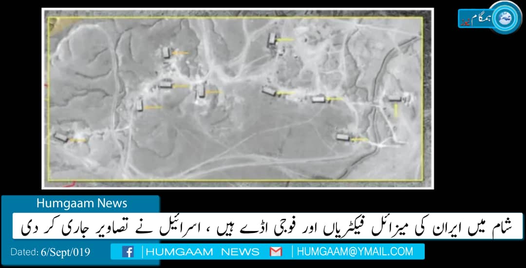 اسرائیل ( ہمگام نیوز ڈیسک ) اسرائیلی حکومت نے بعض مقامات کی تصاویر جاری کی ہیں جن کے بارے میں اس کا کہنا ہے کہ یہ ممکنہ طور پر شام میں عراق اور لبنان کی سرحدوں کے نزدیک ایران کی میزائل فیکٹریاں اور فوجی اڈے ہیں۔ تل ابیب میں ذرائع اور ماہرین کا کہنا ہے کہ اِفشا کی جانے والی تصاویر کا مقصد دباؤ ڈالنا اور ان مقامات کو نشانہ بنانے کے لیے راہ ہموار کرنا ہے۔