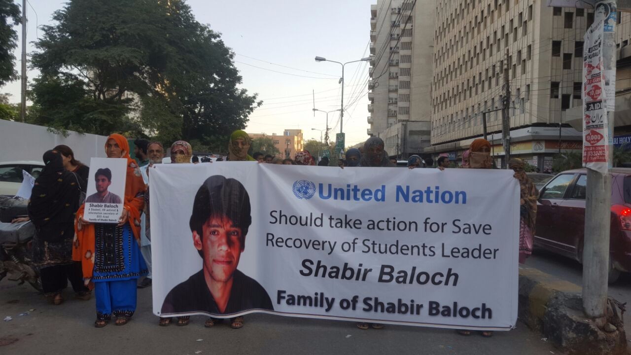 کراچی (ہمگام نیوز) بلوچ اسٹوڈنٹس آرگنائزیشن آزاد کے لاپتہ رہنماء شبیر بلوچ کے اہلخانہ کی جانب سے کراچی پریس کلب کے باہر بھوک ہڑتالی کیمپ آج تیسرے روز بھی قائم رہا ۔ بھوک ہڑتالی کیمپ میں شبیر بلوچ کے لواحقین کے ساتھ اظہار ہمدردی کے لئے بلوچ کارکن تمام دن کھلے آسمان تلے بیٹھے رہے۔ شبیر بلوچ کے لواحقین سے اظہار ہمدردی کے لئے بی ایچ آر او کی چیئرپرسن بی بی گل بلوچ اور انسانی حقوق کی تنظیموں کے دیگر ارکان نے بھوک ہڑتالی کیمپ کا دورہ کیا۔ انہوں نے میڈیا سے گفتگو میں کرتے ہوئے مطالبہ کیا کہ لاپتہ افراد کو فوری طور پر بازیاب کیا جائے۔ بی بی گل بلوچ نے کہا کہ بلوچستان سے لوگوں کی جبری گمشدگی ایک المیہ کی شکل اختیار کرچکی ہے۔ زندگی کے تمام طبقہ ہائے فکر کے لوگ جبری گمشدگی کی پالیسیوں کی وجہ سے خود کو غیر محفوظ تصور کرتے ہیں۔سیاسی کارکن اور اسٹوڈنٹ رہنماء شبیر بلوچ کی گمشدگی بھی انہیں پالیسیوں کا حصہ ہے۔ انسانی حقوق کے ملکی اور عالمی اداروں کی اپیل کے باوجود بھی شبیر بلوچ کو تاحال بازیاب نہیں کیا جا سکا ہے۔ بی بی گل بلوچ نے کہا کہ ریاستی ادارے خود ریاستی قوانین کی خلاف ورزی کررہے ہیں۔ پاکستانی آئین کسی قوت کو اجازت نہیں دیتا کہ وہ لوگوں کو گرفتاری کے بعد لاپتہ رکھے۔ انہوں نے مطالبہ کیا کہ شبیر بلوچ سمیت تمام سیاسی کارکنوں کو بازیاب کیا جائے۔ اس موقع پر شبیر بلوچ کے لواحقین نے کہا کہ آج ہمارے تین روزہ بھوک ہڑتالی کیمپ کا تیسرا روز ہے، بھوک ہڑتالی کیمپ میں دانشوروں، انسانی حقوق کی کارکنوں کی آمد اور ہم سے یکجہتی کا اظہار حوصلہ افزا رہا ہے، لیکن حکومتی اداروں کی عدم توجہی اور خاموشی انتہائی مایوس کن ہے۔ شبیر بلوچ کو ان کی اہلیہ سمیت سینکڑوں لوگوں کی آنکھوں کے سامنے سے ایف سی کی باوردی اہلکاروں نے گرفتار کرلیا، لیکن اب وہ اس گرفتاری اور گمشدگی پر مکمل خاموشی اختیار کیے ہوئے ہیں۔ ہمارا اختیار داروں سے مطالبہ ہے کہ شبیر بلوچ کو بازیاب کیا جائے۔ بھوک ہڑتالی کیمپ کی اختتام کے بعد لواحقین نے پریس کلب کے سامنے احتجاجی مظاہرہ بھی کیا، مظاہرے میں سیاسی کارکنوں اور سول سوسائٹی کے ارکان نے شرکت کی۔ شرکاء نے ہاتھوں نے میں بینرز، پلے کارڈ اور شبیر بلوچ کی تصاویر اٹھا رکھے تھے۔ مظاہرین نے پریس کلب کے سامنے نعرہ بازی کرتے ہوئے مطالبہ کیا کہ شبیر بلوچ کو فوری بازیاب کیا جائے۔ انہوں نے کہا کہ نوجوانوں کو اٹھا کر لاپتہ کرنے اور ان کی مسخ شدہ لاشیں پھینکنے کا سلسلہ فوری طور پر بند ہونا چاہیے۔ شبیر بلوچ کے لواحقین نے کہا کہ گھر کے نوجوان فرد کی گمشدگی تمام خاندان کے لئے اذیت کا باعث بنا ہوا ہے۔ حکومتی ادارے بے حسی کی حد تک خاموشی اختیار کیے ہوئے ہیں۔ انہوں نے حکومتی اداروں اور بلوچستان حکومت سے مطالبہ کیا کہ شبیر بلوچ کی فوری بازیابی کو ممکن بنانے کے لئے اپنا کردار ادا کریں۔