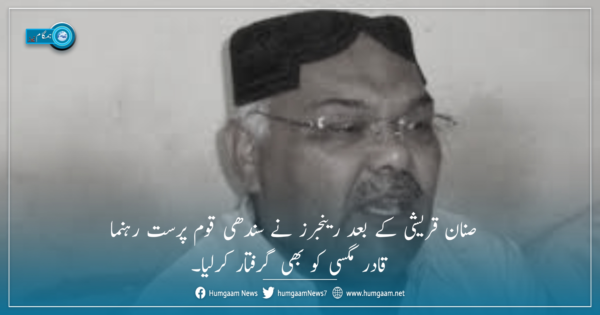 حیدرآباد(ہمگام نیوز) مانیٹرنگ نیوز ڈیسک رپورٹس کے مطابق رینجرز نے سندھی قوم پرست رہنما قادر مگسی کو گرفتارکرلیا تفصیلات کے مطابق گزشتہ دونوں بحریہ ٹاون کے اہلکاروں نے سندھی قوم پرست جماعتوں کے رہنما سید جلال محمود شاہ, قادر مگسی، ایاز لطیف پلیجو،صنعان قریشی، مشتاق سرکی اور دیگر بلوچ رہنماؤں گل حسن کلمتی، جہانزیب کلمتی، مراد گبول، داد کریم، سمیت دیگر افراد