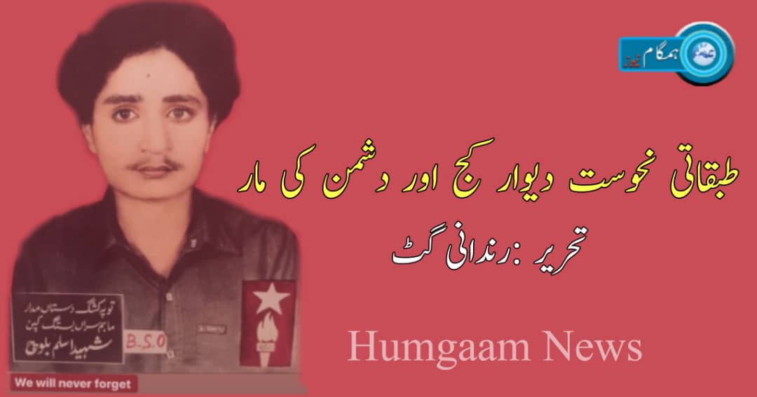 1999 میں سنگت حیربیارمری نے مکران کے خودساختہ غیرقبائلیوں کو دعوت دی کہ آئیں تحریک آزادی میں شامل ہو، انہوں نے شروع میں تو حامی تو بھر لی، لیکن موقع پانے کے بعد جامع قومی مسجدبنانے کے بجائے اپنے ڈیڑھ انچ کا مسجد الگ سے بنایا۔ یہ کہتے ہوئے کہ آپ تو سردار ہو، تمھارا کیا بھروسہ کل پاکستان کی سیاست کا راہ لوگے، ہم تعلیم یافتہ غیرقبائلی لوگ ہیں اپنا جہد جاری رکھیں گے۔ ان لوگوں کی اکثریت کا سیاسی تربیت اور سوچ کا تعلق بھی اس گروہ سے تھا جو کہورخان کی بی ایس او کے پیروکار تھے۔ یہ طبقاتی نحوست آج بھی بڑی شان سے ہمارے فیصلوں پر اثر انداز ہے۔ یہ متوسطی طبقہ سیاسی گھروندے بنانے پر یقین رکھتی ہے، کوئی قومی کلات بنانے میں اسے سخت تحفظات ہیں ۔سماجی لحاظ سے نفسیاتی طور پر یہ تعلیم یافتہ غیرقبائلی مخلوق انتہائی احساس محرومی و کمتری کے شکار ہیں اور بی ایس او کے سیاسی پلیٹ فارم سے یہ انتہائی احساس برتری کے شکار ہیں۔ عجیب نفسیات ہے اسکی یہی پیچیدہ طبقاتی سوچ تھی جس نے نہ صرف اُس وقت کی تحریک کے ایک بہترین عوامی حمایت کو کھو دیا بلکہ ہمارے خطے میں عالمی قوتوں کے درمیان سرد جنگ کا میدان سج جانے کے نادر موقع کو بھی کھودیا۔ شہید فدا احمد کے جامع قومی آزادی کی پروگرام کے سامنے اگر طبقاتی رکاوٹ نہ بنتے تو یقین جانیے تحریک سویت یونین کی حمایت ضرور حاصل کرلیتا جسے پاکستان ،امریکہ اور افغانستان میں چیلنج کر رہے تھے۔ اگر کچھ نہ ہوتا لیکن تحریک internationalized تو ہوجاتا۔