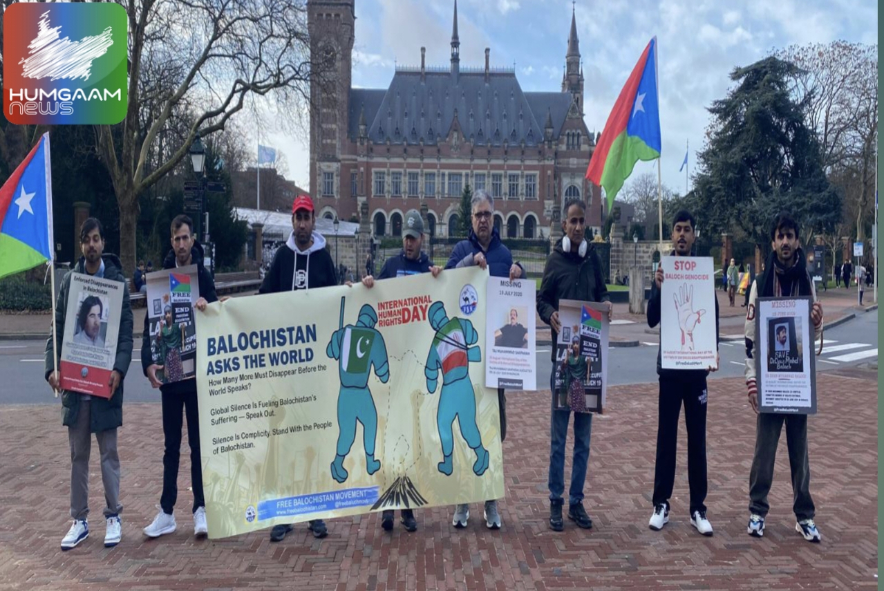 دی ہیگ (ہمگام نیوز) عالمی یومِ انسانی حقوق کے موقع پر، فری بلوچستان موومنٹ کے نیدرلینڈز چیپٹر نے دی ہیگ میں انٹرنیشنل کورٹ آف جسٹس کے سامنے احتجاجی مظاہرہ کیا، بلوچستان میں ایران و پاکستانی قبضہ گیر ریاستوں کی جانب سے بلوچ قومی آزادی کے تحریک کو کاونٹر کرنے کے لئیے بڑے پیمانے پر انسانی حقوق کی خلاف ورزیوں کا سلسلہ پچھلے کئی دہائیوں سے جاری ہے۔