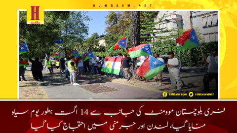 لندن/فرینکفرٹ (پریس ریلیز) فری بلوچستان موومنٹ کی جانب سے پاکستان کی نام نہاد یوم آزادی کو بطور یوم سیاہ منایا، برطانیہ کے شہر لندن اور جرمنی کے شہر فرینکفرٹ میں احتجاج کیا گیا۔