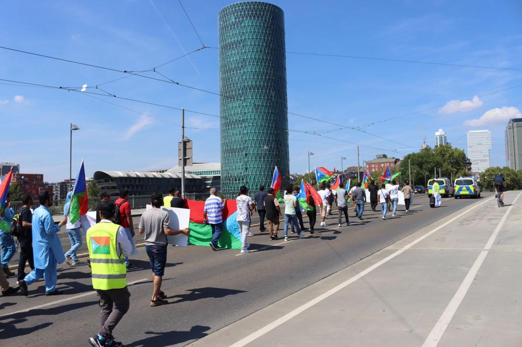 ادھر جرمنی کے شہر فرینکفرٹ میں فری بلوچستان موومنٹ نے عین اُسی وقت اپنا احتجاج شروع کیا جب پاکستانی کونسلیٹ میں پاکستانی کمیونٹی نے اپنی نام نہاد یوم آزادی کے لئے جشن کا اہتمام کیا تھا جو جرمنی کے معیاری وقت کے مطابق صبح 11 بجے شروع ہونا تھا۔