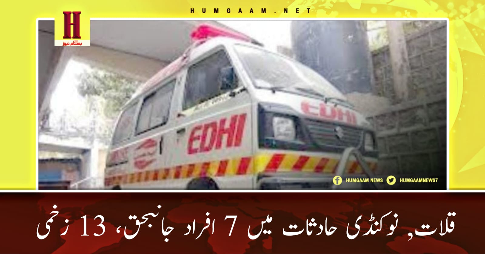 Homeخبریںقلات, نوکنڈی حادثات میں 7 افراد جانبحق، 13 زخمی