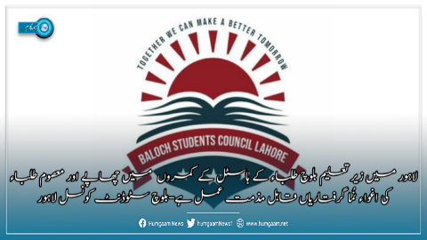 بلوچ اسٹوڈنٹ کونسل لاہور کے ترجمان نے بلوچ طلباء کے ہاسٹلز میں چھاپوں اور طلباء کے اغوا کاریوں پر تشویش کا اظہار کرتے ہوئے کہا کہ گزشتہ شب سے لاہور میں زیرِ تعلیم بلوچ طلباء کے ہاسٹلز میں چھاپے لگائے جا رہے ہیں ۔