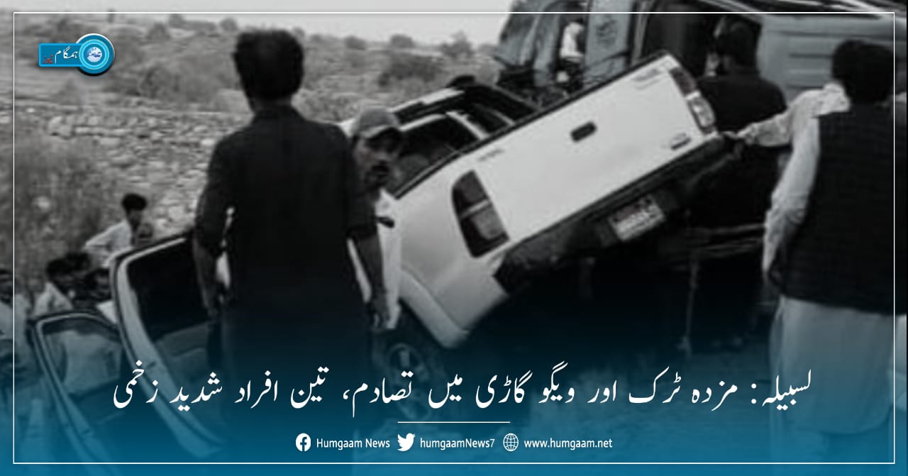 لسبیلہ: مزدہ ٹرک اور ویگو گاڑی میں تصادم، تین افراد شدید زخمی