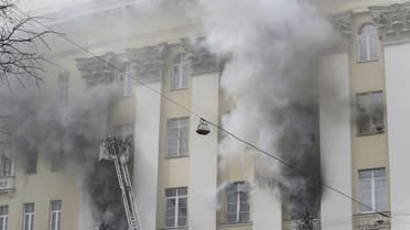 روس کی خبر رساں ایجنسی تاس کی رپورٹ کے مطابق آتش زدگی کے بعد عمارت کے مختلف حصوں سے دھواں نکل رہا تھا اور شہری دفاع کا عملہ آگ پر قابو پانے کے لیے امدادی سرگرمیوں میں مصروف تھا۔