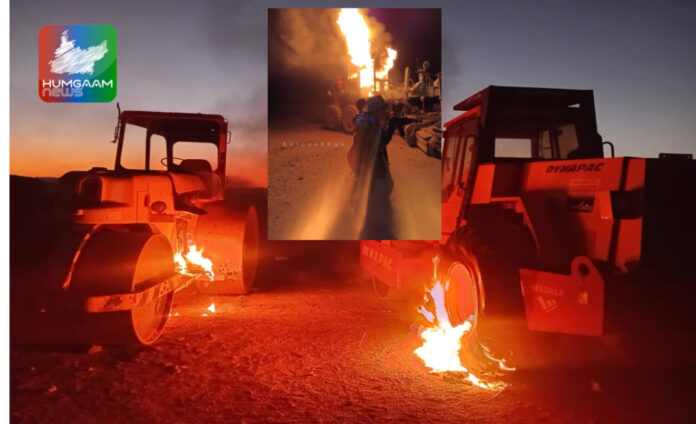 ذرائع کے مطابق مسلح افراد جدید ہتھیاروں سے لیس تھے۔ انہوں نے موقع پر موجود مزدوروں کو تنبیہ جاری کرنے کے بعد رہا کر دیا، جبکہ تعمیراتی کام میں استعمال ہونے والی ڈمپر، لوڈر اور دیگر مشینری کو نذرِ آتش کر دیا ، جس کے باعث تمام مشینری ناکارہ ہو گیا۔