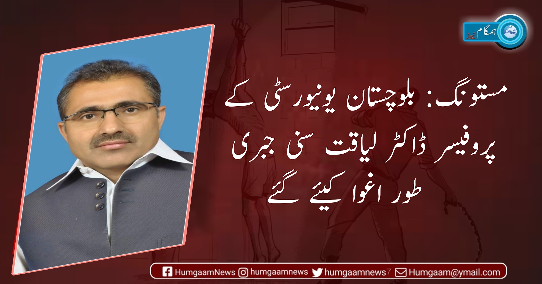 مستونگ:بلوچستان یونیورسٹی کے پروفیسر ڈاکٹر لیاقت سنی جبری طور اغوا کیئے گئے