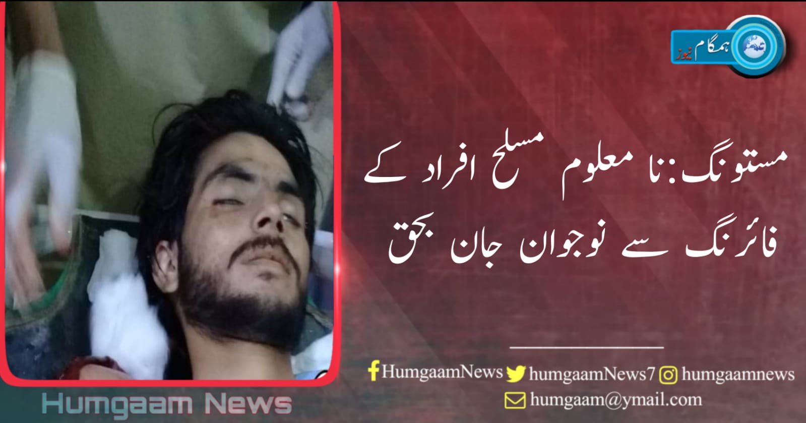 نقصلات کے مطابق مقبوضہ بلوچستان کے ضلع مستونگ کے بس اڈہ میں نامعلوم افراد کی فائرنگ سے نوجوان جاں بحق ہوگیا فائرنگ کرنے والے ملزمان موقع واردات سے فرار ہونے میں کامیاب ہوگئے۔ اب تک کی اطلاعات کے مطابق جاں بحق نوجوان کی نعش کو ہسپتال منتقل کر دیا گیا ہی۔