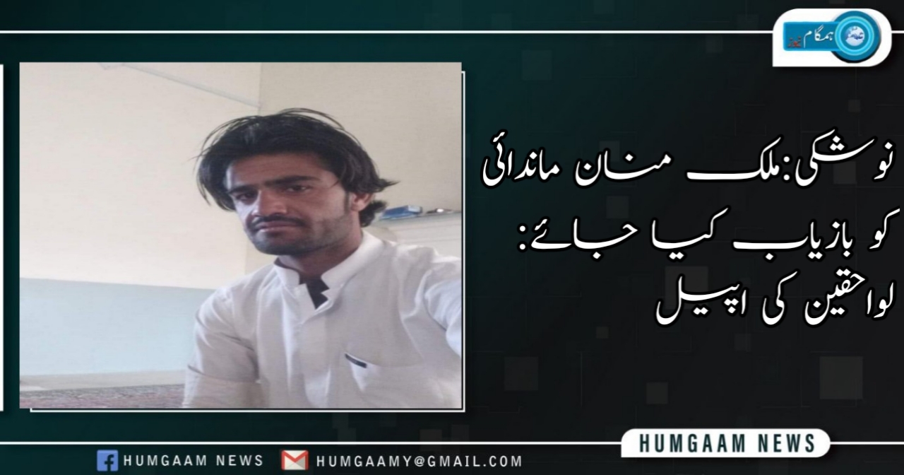 Homeخبریںنوشکی: ملک منان ماندائی کو بازیاب کیا جائے:لواحقین کی اپیل
