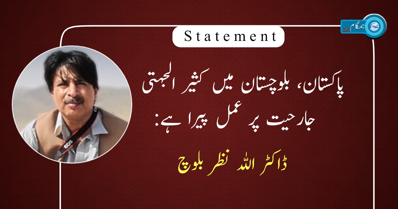 ڈاکٹر اللہ نذربلوچ نے کہا کہ حیات بلوچ کے ہولناک اور لرزہ خیز قتل کے بعد بلوچ قوم کا رد عمل فطری ہے۔ بلوچ قوم نے ہزاروں فرزندوں کی قربانی دیکر بلوچ قومی وجود کو زندہ رکھا ہے۔ ہماری شناخت، ثقافت اور زبان کو ختم کرنے کیلئے پاکستان نے تمام حربے آزمائے ہیں۔ یوں بلوچ نسل کشی کے ساتھ زبان اور ثقافت بھی خطرات سے دوچار ہیں۔ اس کیلئے پاکستان نے نہ صرف بلوچی زبان میں لکھنے اور پڑھنے پر پابندی عائد کی ہے بلکہ انگلش لینگوئج سنٹروں اور اس کے اساتذہ کو بھی مسلسل نشانہ بنایا گیا ہے۔ جو کتابیں کراچی اور لاہور کے ناشر چھاپتے ہیں، بلوچستان میں ان پر پابندی عائد ہے۔ کیچ ہی کے بک اسٹالوں سے بلوچی سمیت تمام زبانوں کی کتابیں ضبط کئے جاچکے ہیں۔ اس سے یہ اندازہ لگانا نہایت آسان ہے کہ پاکستانی ریاست بلوچوں کو تعلیم اور شعور سے دور رکھنے کی کوشش میں ہے۔