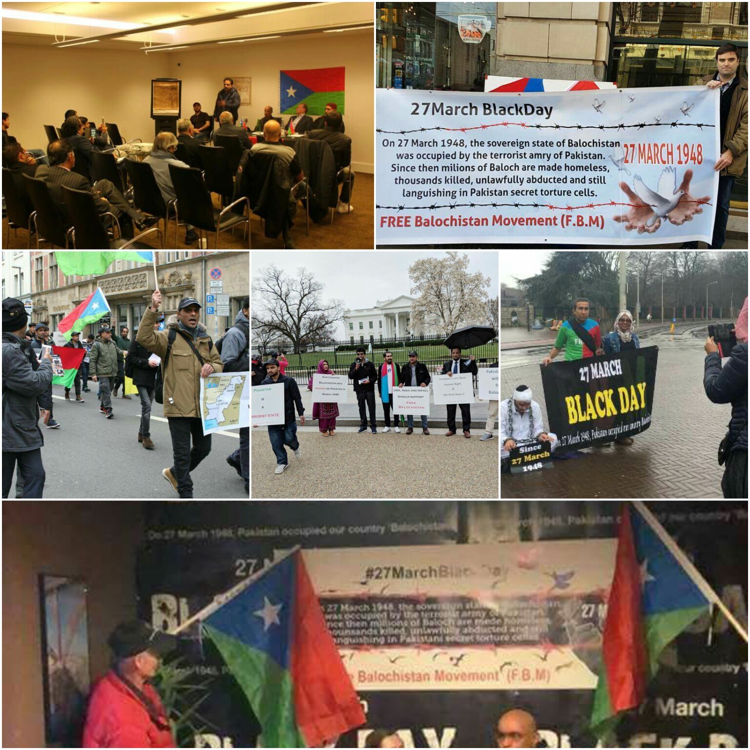 بیان میں کہا گیا ہے کہ اس تاریخ کو اجاگرکرنے اورپاکستانی قبضہ گیریت کے خلاف آواز اٹھانے کے لیے فری بلوچستان مومنٹ کے زیر اہتمام جرمنی، لندن،امریکہ،کینیڈا، سویڈن اور نیدرلینڈ سمیت بلوچستان میں ستائیس مارچ یوم قبضہ کےحوالے سے احتجاج اور پروگرامز منعقد کیئےگئے۔ ایف بی ایم کی جانب سے جرمنی کے شہر برلن میں ایک ریلی نکالی گئی جو کہ برلن کے سنٹرل سٹیشن سے ہوتا ہوا برلن گیٹ میں پہنچ کر احتجاج کی شکل اختیار کر گیا ریلی کے شرکاء نے ہاتھوں میں بینرز پلے کارڈ اور آزاد بلوچستان کے جھنڈے اٹھائے ہوئے تھےجن میں بلوچستان پر پاکستان کے قبضے کےخلاف نعرے اور پاکستان کی جانب سے بلوچ قوم کی نسل کشی کے حوالے سے آگاہی پیغامات درج تھے، برلن گیٹ پر پہنچنے کےبعد فری بلوچستان موومنٹ کے کارکنوں نے بلوچستان پر پاکستانی قبضے کے خلاف زبردست نعرے بازی کی اور لوگوں میں پمفلٹ تقسیم کیئےاس کے علاوہ امریکہ اور کینیڈامیں فری بلوچستان موومنٹ کی جانب سے بلوچستان پر پاکستانی قبضے کے خلاف احتجاج کیئے جس میں شرکاء نے بلوچستان پر پاکستانی جبری قبضے کے خلاف نعری بازی کی اور امریکی اور کینیڈین عوام میں ستائیس