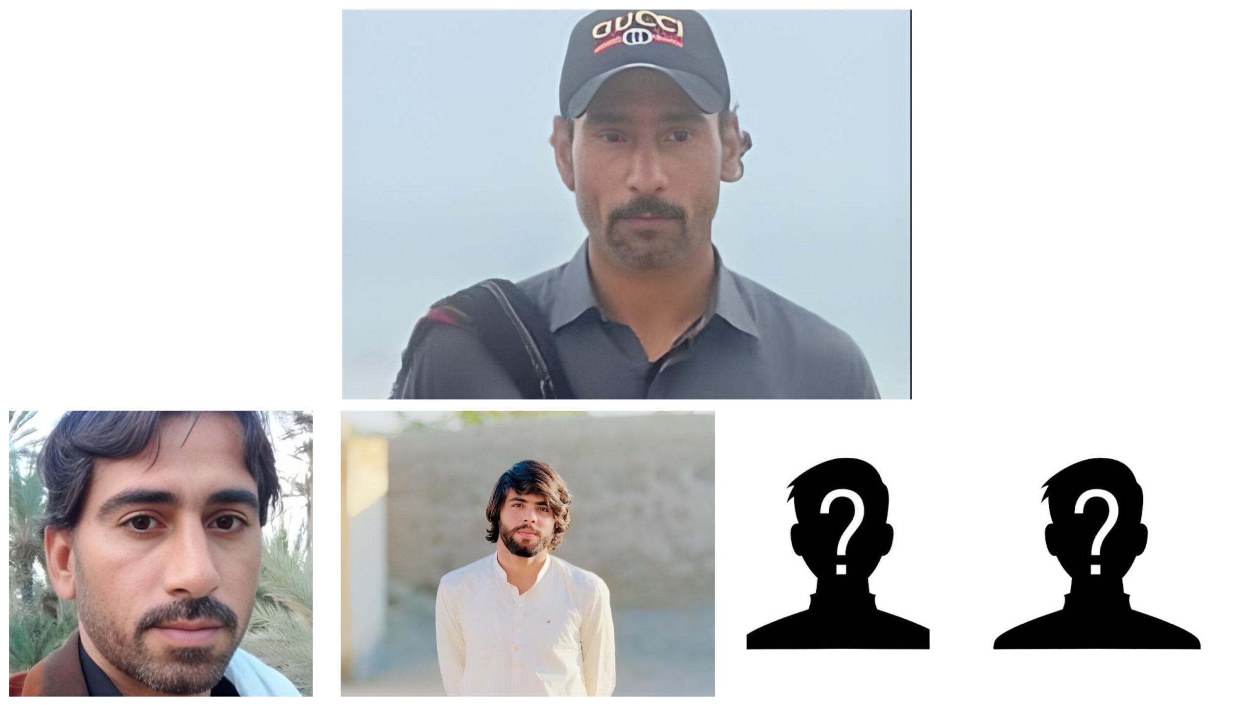 لاپتہ ہونے والوں کی شناخت بختیار ولد حاجی محمد حسن، عرفان ولد حاجی محمد حسن، بلال ولد حاجی محمد حسن، اویس احمد ولد یار محمد اور حسن ولد خلیل کے ناموں سے ہوئی ہے۔