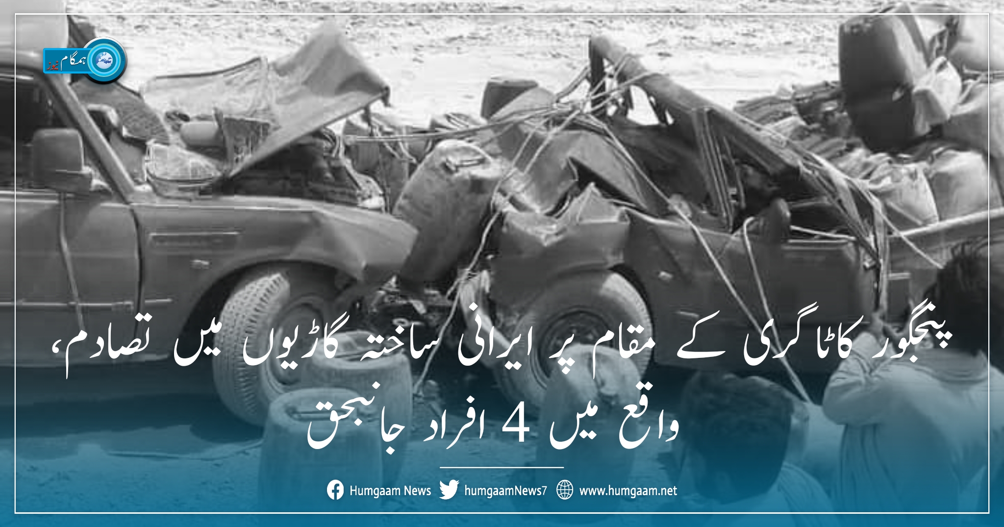 پنجگور کاٹاگری کے مقام پر ایرانی ساختہ گاڑیوں میں تصادم 4 افراد جانبحق-