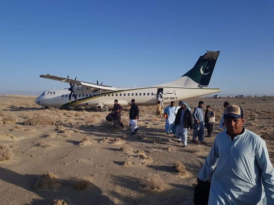 کراچی سے جانے والی پی آئی اے کی پرواز پی کے 517 نے جیسے ہی پنجگور ایئرپورٹ پر لینڈ کیا، طیارہ رن وے سے بے قابو ہوکر کچی زمین پر اتر گیا، جس کے نتیجے میں جہاز کا ایک ٹائر پھٹ گیا۔