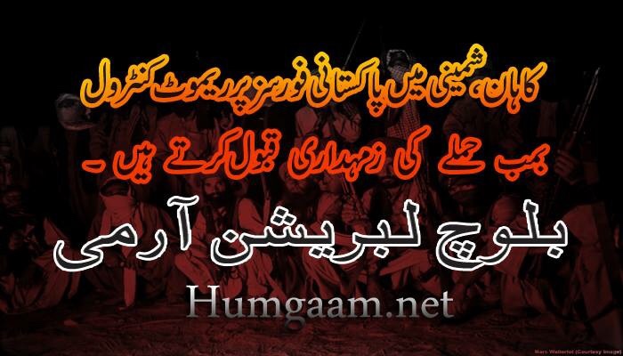 کاہان،شمینی میں پاکستانی فورسز پر ریموٹ کنٹرول بمب حملے کی زمہداری قبول کرتے ہے،؛آزاد بلوچ