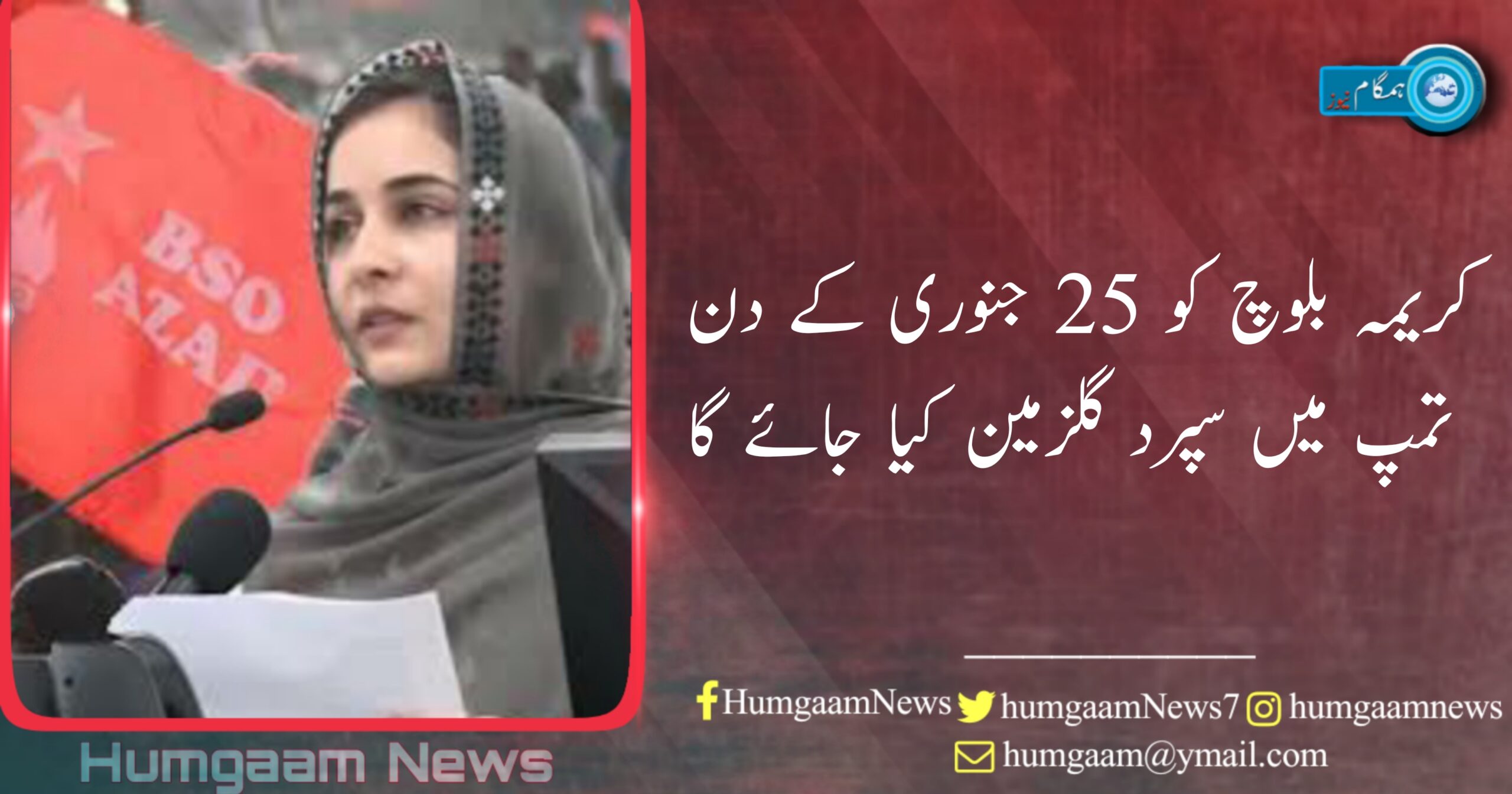 یاد رہے کریمہ بلوچ کی کینیڈا کے شہر ٹورنٹو میں پراسرار موت پچھلے مہینے دسمبر میں ہوئی تھی۔