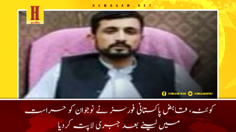 Homeخبریںکوئٹہ، قابض پاکستانی فورسز نے نوجوان کو حراست میں لینے بعد جبری... خبریں کوئٹہ، قابض پاکستانی فورسز نے نوجوان کو حراست میں لینے بعد جبری لاپتہ کردیا 0 548 22/09/2022 Share FacebookTwitterPinterestWhatsApp کوئٹہ (ہمگام نیوز) اطلاعات کے مطابق کوئٹہ میں قابض پاکستانی فورسز نے سلمان ولد ظہور احمد سکنہ کردگاپ مستونگ کو گزشتہ روز کوئٹہ سے حراست میں لینے بعد جبری لاپتہ کردیاہے جو کہ تاحال ان کی کوئی اطلاع سامنے نہیں آئی ہے ۔ Share FacebookTwitterPinterestWhatsApp Previous articleجبری لاپتہ افراد کے بازیابی کیلے لگائے گئے کیمپ کو 4768 دن ہوگئے ،ماما قدیرNext articleیونان، چابہار واقعہ اور مہسا امینی کی قتل کے خلاف یونان میں بلوچ کمیونٹی کی جانب ایرانی جابر حکومت کیخلاف احتجاجی مظاہرہ یہ بھی پڑھیں خبریں چابہار میں شہید بہشتی اسکلہ اور سپاہ پاسداران کے ٹھکانوں پر امریکہ اور اسرائیل کا مشترکہ میزائل حملہ 09/03/2026 انٹرنشنل شدید حملوں کے بعد ایرانی قیادت کے اندرونی اختلافات منظر عام پر آنے لگے 08/03/2026 خبریں خاران: سی پیک روڈ پر بلوچ سرمچاروں کا پاکستانی فوج کے کانوائے پر حملہ، 15 سے 20 اہلکاروں کی ہلاکت کے اطلاعات 04/03/2026 فیچرز نتيجة للمشاورات الثلاثية بين الصين وإيران وباكستان ، سوف تتسارع الإبادة الجماعية للبلوش. حیربیار مری 24/09/2023 على الأمه البلوشيه في بلوشستان المحتله من قبل ايران الابتعاد عن الانتخابات الرئاسية الإيرانية و تأكيد ان لا علاقة لهم باي شكل من الاشكال... 27/06/2024 عدم مشاركة البلوش في الانتخابات الإيرانية علامة إيجابية، يجب مقاطعة المرحلة الثانية من الانتخابات الإيرانية! حركة بلوشستان الحرة FBM 05/07/2024 ندعم حقوق الإنسان للبلوش وندعم حركتهم التحريرية من أجل الاستقلال, احمد عارف 26/03/2024 Load more