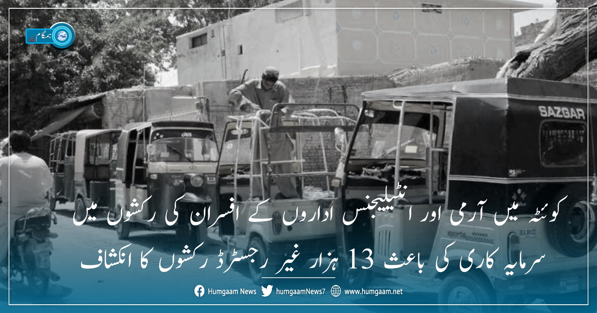 کوئٹہ میں آرمی اور انٹیلیجنس اداروں کے افسران کی رکشوں میں سرمایہ کاری کی باعث 13 ہزار غیر رجسٹرڈ رکشوں کا انکشاف