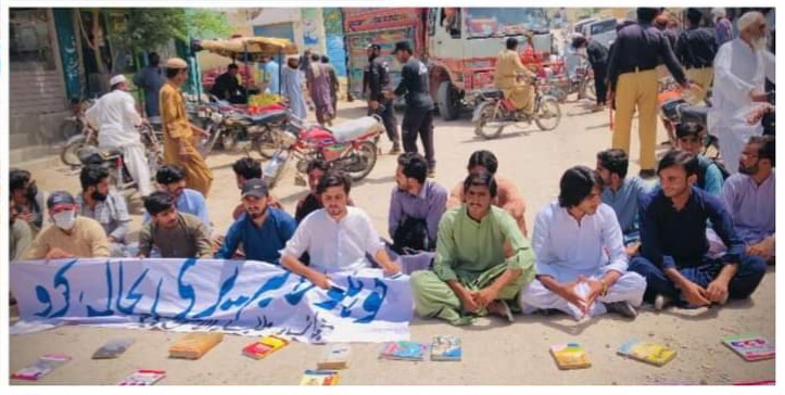 تفصیلات کے مطابق بلوچستان شہر کوہلو میں پبلک لائبریری کو ڈسٹرکٹ چیئرمین اور وائس چیئرمین کے دفتر بنانے کیخلاف طلباء الائنس نے ختم نبوت چوک پر کتابیں رکھ کر احتجاج ریکارڈ کرایا ہے۔