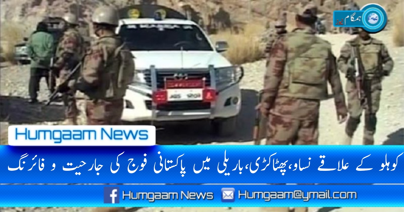 کوہلو (ہمگام نیوز) نماہندہ ہمگام کے مطابق گزشتہ شام سے مقبوضہ بلوچستان کے ضلع کوہلو کے پہاڑی علاقے نساو،باریلی، کہریں وڈھ پھٹاکڑی میں پاکستانی فوج کے 6 گاڑیوں پر مشتمل فوجی دستے نے مذ کورہ علاقوں کا رخ کرتے ہوئے فوجی جارحیت و بربریت کی اطلاعات موصول ہوئی ہیں۔