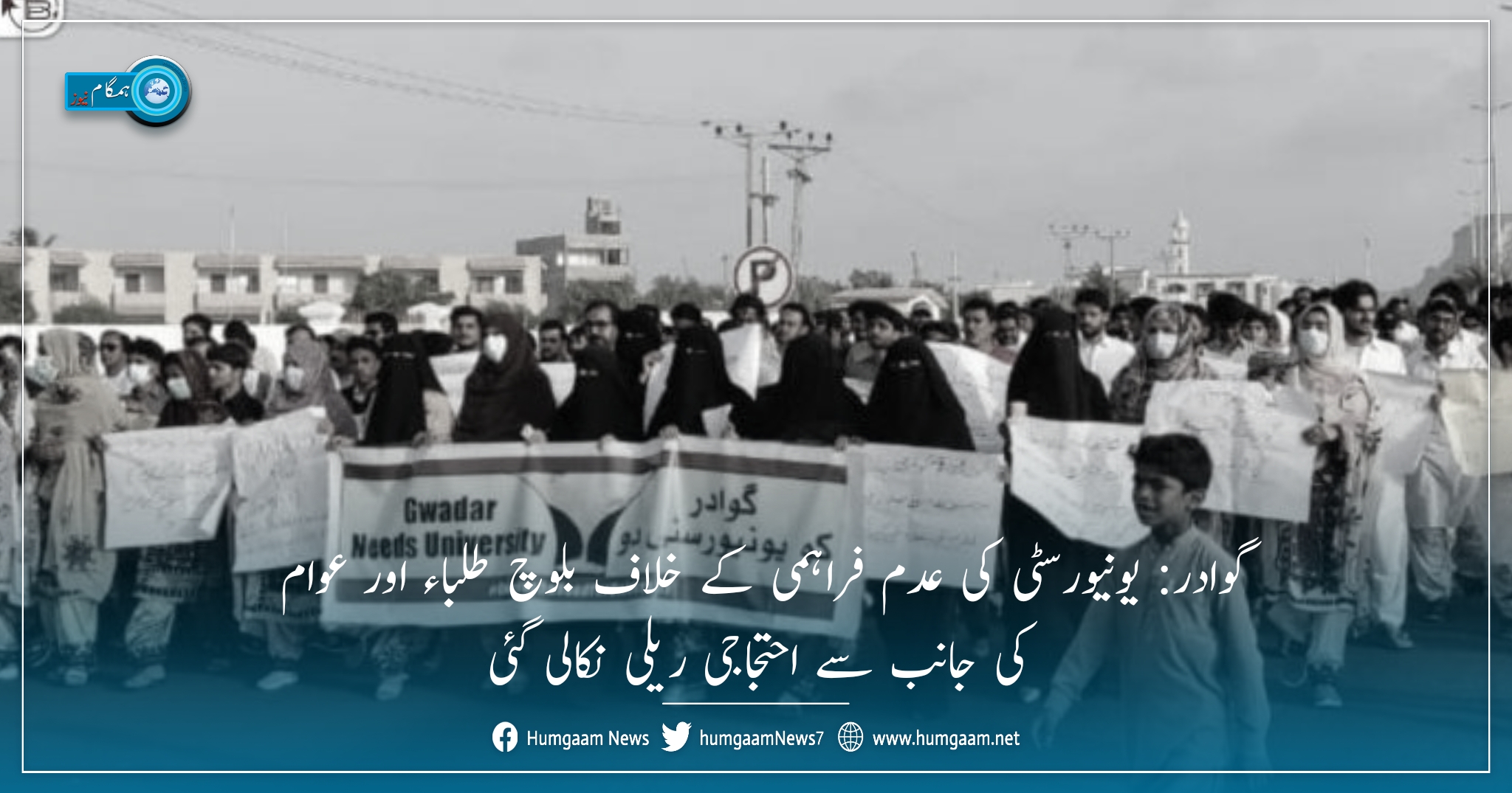 تفصیلات کے مطابق بلوچستان کے ساحلی شہر گوادر میں بلوچ طلباء ایک عرصہ سے یونیورسٹی کے قیام کیلئے مختلف پلیٹ فارمز پر سراپا احتجاج ہیں جہاں آج بروز جمعہ طلباء سمیت علاقے کے مختلف طبقہ فکر کے لوگوں نے یونیورسٹی کی عدم فراہمی کے خلاف ایک احتجاجی ریلی نکالی جس میں شریک طلباء اور طالبات کی بڑی تعداد نے ہاتھوں میں پلے کارڈز اٹھا کر شہر کے اہم سڑکوں پر مارچ کرتے ہوئے یونیورسٹی کا مطالبہ کیا۔