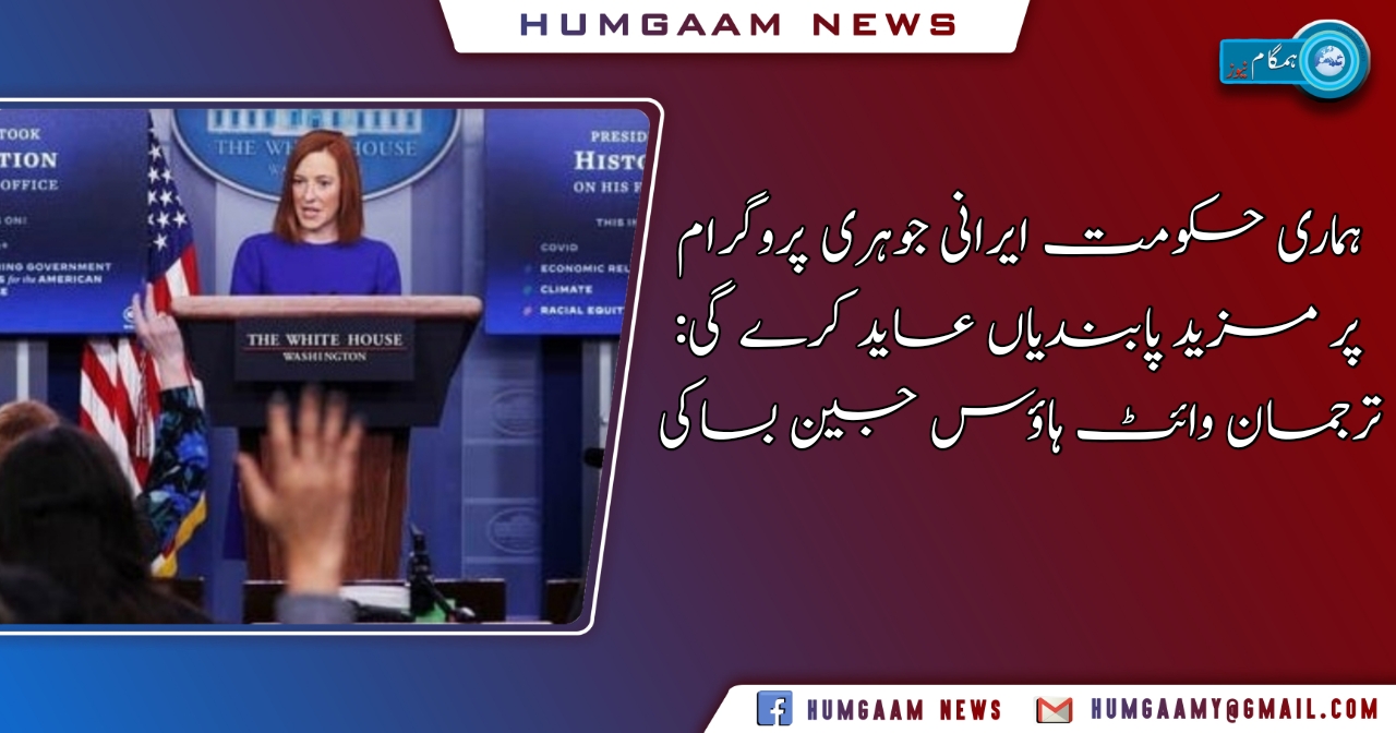 ہماری حکومت ایرانی جوہری پروگرام پر مزید پابندیاں عاید کرے گی: ترجمان وائٹ ہاؤس جین بساکی